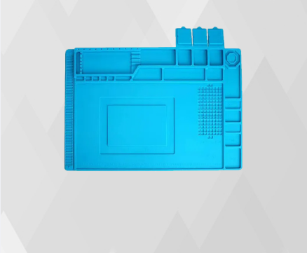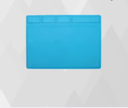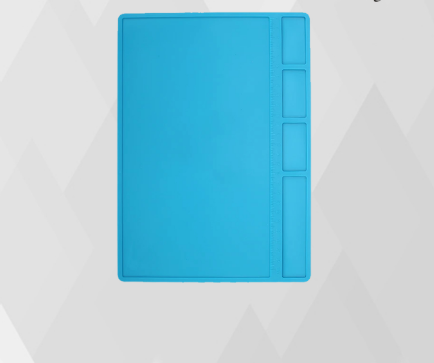 The **MC V41 Heat Insulation Mat** is a professional-grade, **high-temperature-resistant silicone repair mat** designed to protect work surfaces during soldering, rework, and electronic assembly. Made from **premium insulating silicone material**, it withstands extreme heat and prevents burns, deformation, or static discharge. The mat provides a large, organised workspace with an anti-slip texture and built-in compartments for screws, tools, and small components, helping technicians work efficiently and safely. Ideal for mobile phone, tablet, and PCB repair, the MC V41 ensures both **heat protection and static safety** for delicate electronic components.