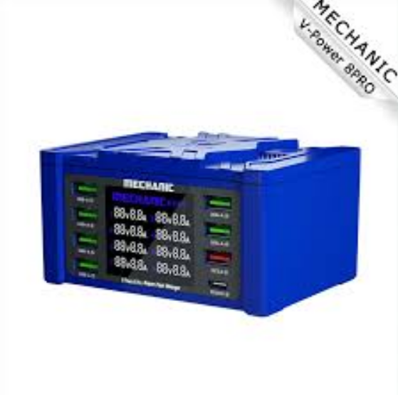 The **MC V Power 8S Multi-Port Charger (115W)** is a **smart, high-efficiency desktop charging hub** designed to charge up to eight devices simultaneously with speed, safety, and stability. Equipped with **intelligent power management technology**, it automatically detects each connected device’s requirements and delivers the optimal current for fast, reliable charging. With a **total power output of 115W**, it ensures consistent performance for smartphones, tablets, and other USB-powered devices. The **durable flame-retardant body**, **overload protection**, and **enhanced cooling system** make the MC V Power 8S ideal for professional repair shops, offices, and multi-device users.