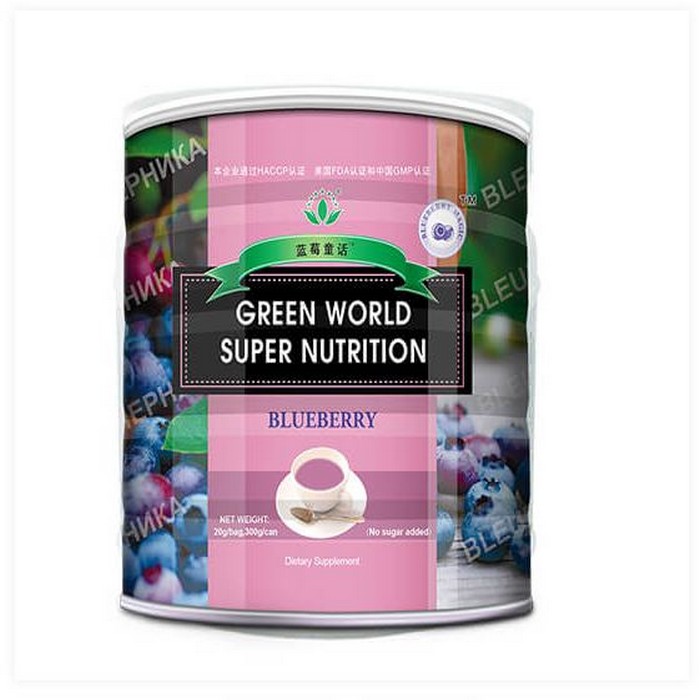Green World Super Nutrition Activates Immune System Through Prolonging Cells’ Life and Repairing Injured Cells. It Maintain Normal Function and Metabolism of Cells, Promotes the Repairing Capability, Enhances Immunity, Cleanses Blood and Removes Toxins. A Daily Intake of 20 g of Green World Super Nutrition Provides 5 mg of Blueberry Extracts and 5 mg of Blueberry Powder, Which is Equivalent to 130 g of Fresh Blueberries