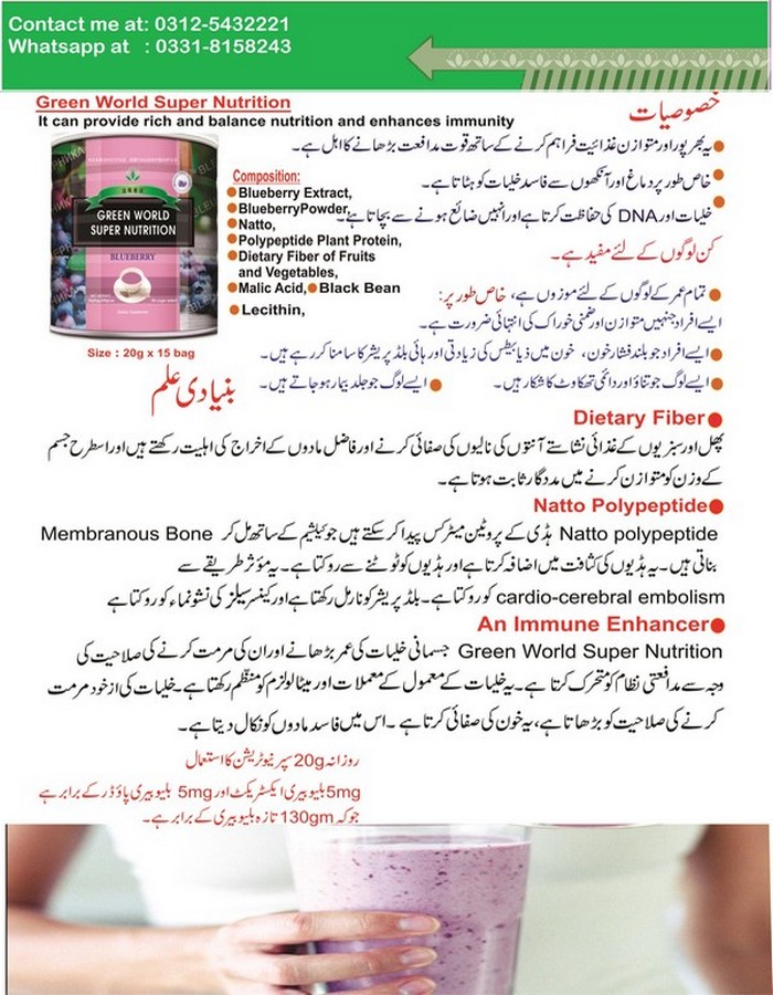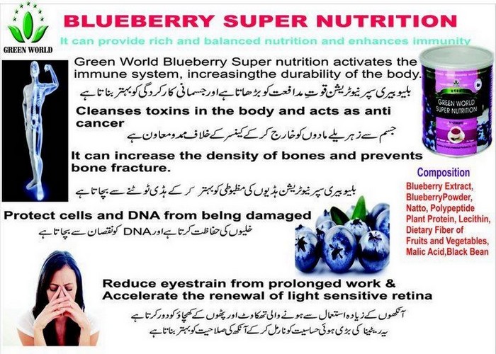 BLUEBERRY SUPER NUTRITION Online at "Green World Food Pakistan" with ✓ Ease & Speed ✓ 100% Genuine Product ✓ Fastest Delivery All Over Pakistan.