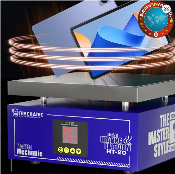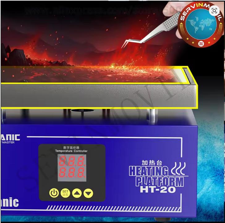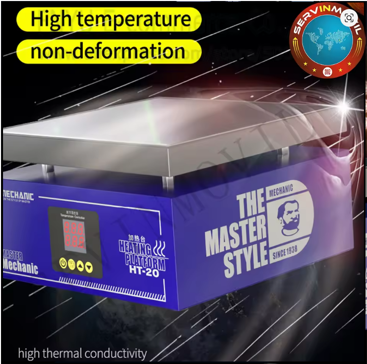 The MC HT20 Heating Platform is a high-efficiency preheating device designed for professional PCB and smartphone motherboard repair. It delivers rapid and consistent heat over a larger working area than standard compact models, making it ideal for adhesive removal, IC desoldering, tin reflow, and bonding applications. The platform’s advanced temperature control ensures stable and uniform heat distribution, protecting delicate components from thermal damage while improving work precision. Its robust metal chassis, slip-resistant base, and user-friendly design make it suitable for heavy-duty use in repair labs and workshops.