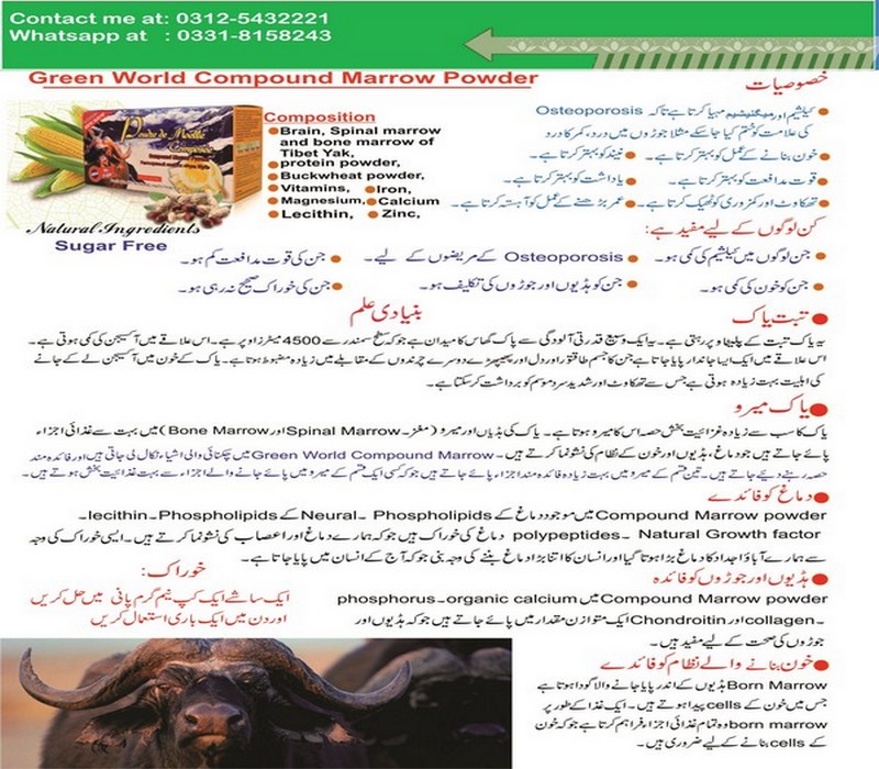 Green World Compound Marrow Powder Price in Pakistan is 5,000/PKR