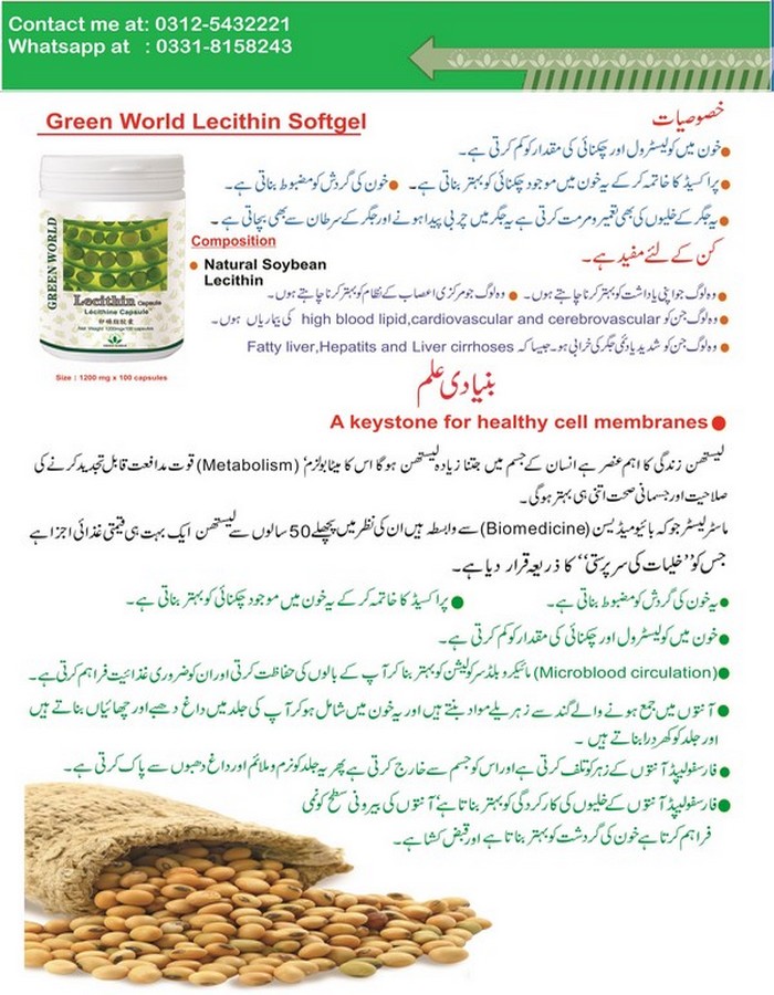 Green World Lecithin Capsule Price in Pakistan is 4,500 /PKR