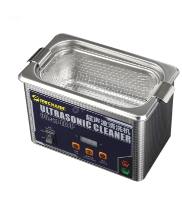 The MC iCLEAN-E08P is a compact ultrasonic cleaning machine designed for deep and efficient cleaning of small precision components such as mobile phone PCBs, camera modules, jewellery, lenses, and soldering tools. It uses high-frequency ultrasonic waves to produce microscopic bubbles that remove dirt, grease, dust, and oxidation from delicate parts without causing damage. With a stainless steel tank and adjustable timer, it provides 360-degree cleaning performance ideal for repair workshops and laboratories.