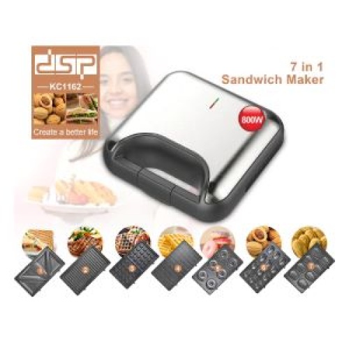 Product Description of 7 in 1 Sandwich Maker 800 Watt Remove able Bake Ware Non-stick Coating Heat Evenly Easy to Clean and Safe to Use DSP KC1162- Home Features: Best 7 in 1- Horse Power: 800 Watt- Express delivery: Lahore- Indicator Light(s): Yes- Model: KC1162- Wattage: 800W- Imported: Yes- Color Family: Black Product Description: Introducing the 7 in 1 Sandwich Maker, a versatile addition to your kitchen. With 800 watts of power, this sandwich maker ensures quick and efficient cooking. The removable bake ware and non-stick coating make it easy to clean, while the even heat distribution guarantees perfectly toasted sandwiches. The indicator lights let you know when it's ready to use, and its black color adds a sleek touch to your kitchen. Imported and designed for safety, this sandwich maker is a must-have for any home chef. Brand Warranty Made in France Voltage : 220-240V, 50-60HzOutput : 800WSandwich/Grill/waffle/donuts/biscuit/ Triangle, stripe, waffle, do nut, olive, shell, shaped waffle plates removable Non-stick coating plates for easy cleaning Connection spring concealed Thermostatically controlled Power on lights Safety thermal cut-out & therm o fuse Specifications of 7 in 1 Sandwich Maker 800 Watt Removeable Bakeware Non-stick Coating Heat Evenly Easy to Clean and Safe to Use DSP KC-1162Brand No BrandSKU468727642_PK-2213588850ModelKC1162Home Features Best 7 in 1color__familyBlackExpress delivery Lahore Indicator Light(s)Yes Horse Power800 Watt Wattage 800WWhat’s in the box1 X DSP Electric Waffle Maker with Accessories and Manual