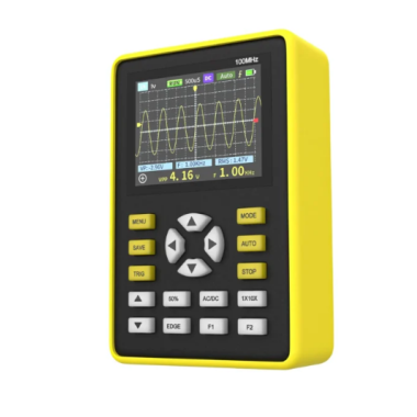 The FR 5012H (also known as FNIRSI 5012H) is a compact, handheld digital oscilloscope designed for diagnostics, maintenance, and R&D use. It offers a 100 MHz analog bandwidth with real-time sampling up to 500 MS/s, making it capable of capturing fast signal transitions. The device includes a 2.4-inch color TFT display (320×240), supports waveform storage and reviewing, and is protected by a silicone anti-slip / shock sleeve. It is battery powered (3000 mAh) for portable operation, offering hours of use away from mains power.