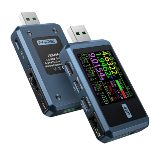The FR FNB48P (FNIRSI FNB48P) is a multifunction USB voltage-current-power tester for testing chargers, cables, power banks, and fast-charge protocols.